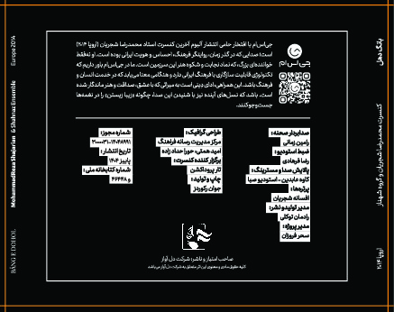 دانلود آلبوم محمدر ضا شجریان به نام بانگ دهل Mohammad Reza Shajarian – Bange Dohol تاریخ : 21 دسامبر 2025 تعداد دانلود : 1,187 صفحه نخست دانلود آلبوم محمدر ضا شجریان دانلود آلبوم محمدر ضا شجریان به نام بانگ دهل دانلود یکجا با کیفیت MP3 320 # پخش نام قطعه پلی لیست کیفیت MP3 320 ترانه 1 Zemzemeh Piece 2 Tasnif-e Suratgar-e Naghash 3 Vocal & Instrumental (Kamancheh, Santur) 4 Chaharmezrab Didar 5 Tar Solo 6 Vocal & Instrumental (Tar, Kamancheh, Santur) 7 Tasnif Bavar Nakardi 8 Saghar Solo 9 Vocal & Instrumental (Rast-Panjgah) 10 Tasnif Bang e Dohol بستن 00:00 00:00 کاور های آلبوم آهنگ های بیشتر از محمدر ضا شجریان نظرات ارسال نظر نظر محمدرضاقدم در تاریخ : دسامبر 21, 2025 در آئین رو نمایی به سان قدیم CD های کار با وکیوم و هولوگرام عرضه شد به مدعوین نظر فرزانه در تاریخ : دسامبر 23, 2025 استاد الاساتید نظر سیاوش در تاریخ : دسامبر 23, 2025 بسیار عالی سپاس از موزیک باران ورود عضویت موزیک باران آهنگ آلبوم موزیک ویدیو انجمن تماس با ما پس از تایپ دکمه اینتر را بفشارید نام کاربری کلمه عبور کلمه عبورم را فراموش کردم ! نام و نام خانوادگی ایمیل نام کاربری کلمه عبور تکرار کلمه عبور کلمه عبورم را فراموش کردم !